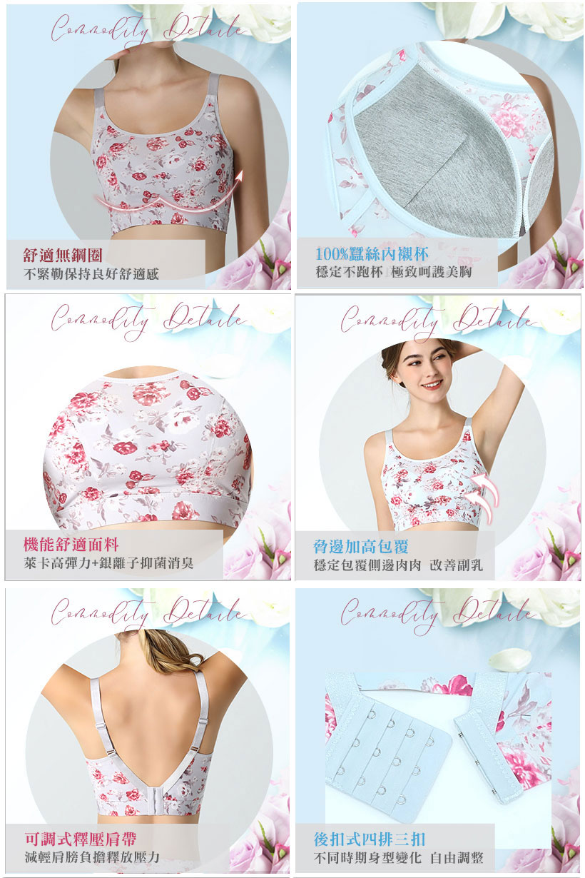 【Daisifen】日本精品花卉蠶絲抑菌冰心美胸內衣